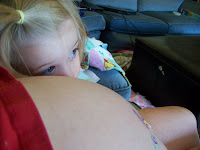 This morning we took a little day trip up to Lake Tippy to spend some quality time in the pool. Ashley and Abbie Little came with us. We had a bit of an ordeal with Kenna's bathing suit. Last night I was contracting and needed to take brethine. I was resting on the couch with the side effects of brethine in full swing and Kenna got her bathing suit out of the bag and put it on. When Daddy came in from mowing, he took it off of her and put her jammies on. I totally forgot to put the bathing suit back in the bag so when we got to the lake, I had no suit for her. There isn't much in North Webster but I ended up finding one of those body suit/learn to swim things and it worked out pretty well. I think the goggles just add to the great fashion!
